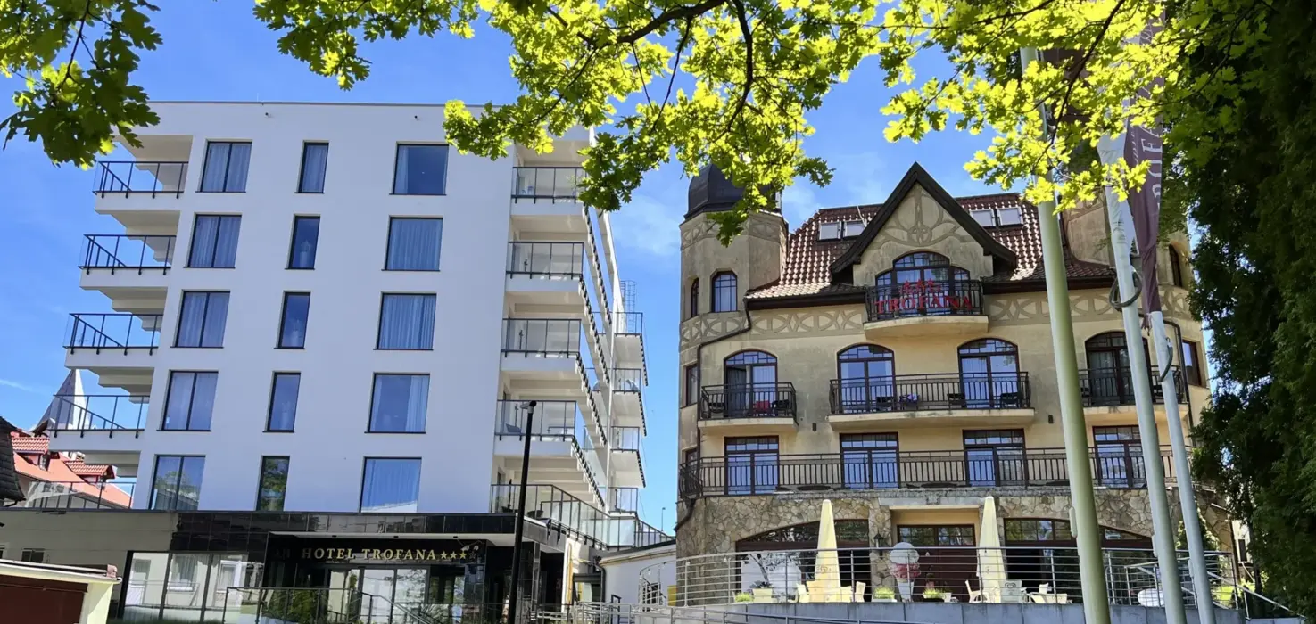 Hotel Trofana to idealne miejsce do spędzenia niezapomnianych wakacji, urlopu od pracy lub weekendu nad morzem. Położony w malowniczych Międzyzdrojach zaledwie 250 metrów od plaży oraz molo, co pozwala bez ustanku cieszyć się morskim klimatem i nie oszczędzać sobie spacerów po piaszczystej plaży. Co więcej, w pobliżu znajduje się słynna Aleja Gwiazd z odciskami dłoni sławnych osób.